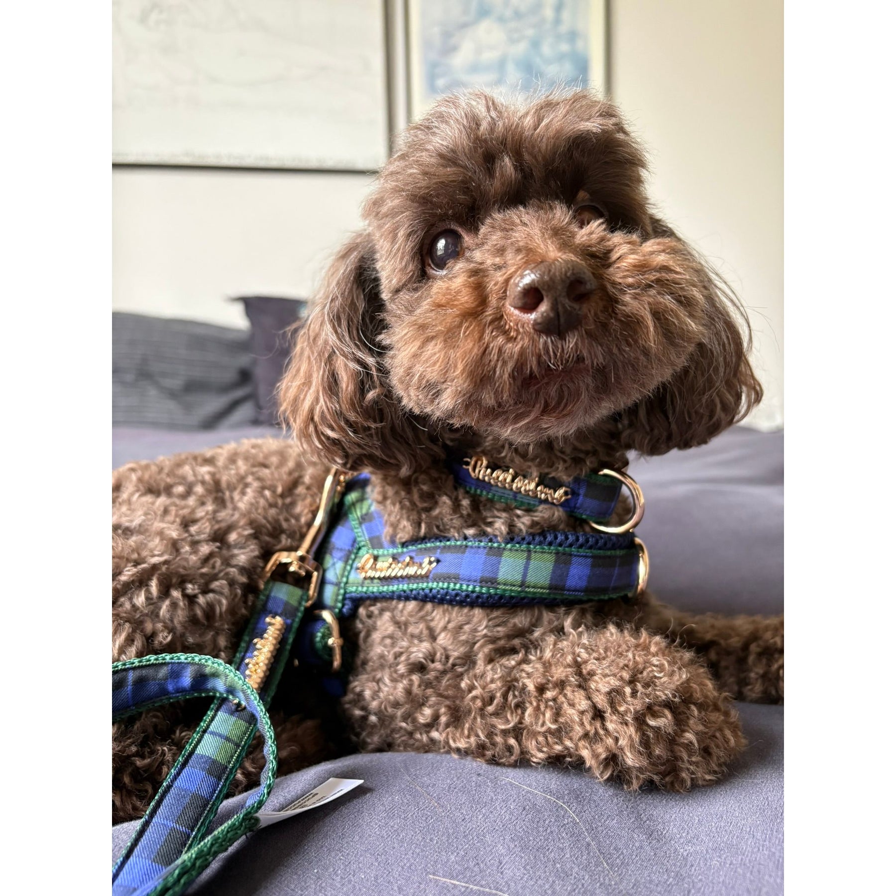 Love in the air.... and so in our brand-new Madras green and indigo blue checkered pattern collection. Made of high quality fabric, this collar will make you and your dog feel elegant.